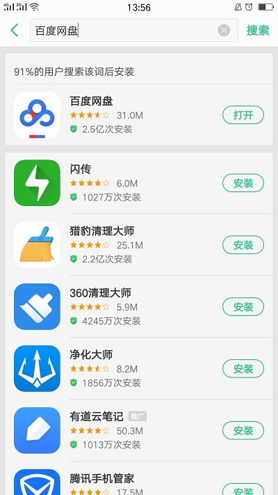 第一步:安裝"百度網盤",在手機應用里搜索"百度網盤",并且下載