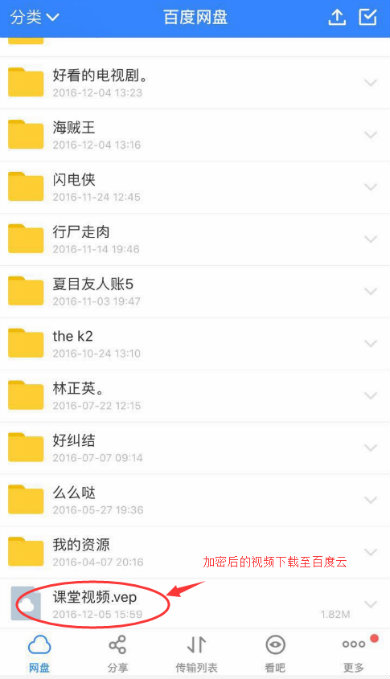 加密的視頻文件必須是以.vep 結尾,如果是其他后綴的視頻,通過百度云將無法關聯我們播放器來播放。