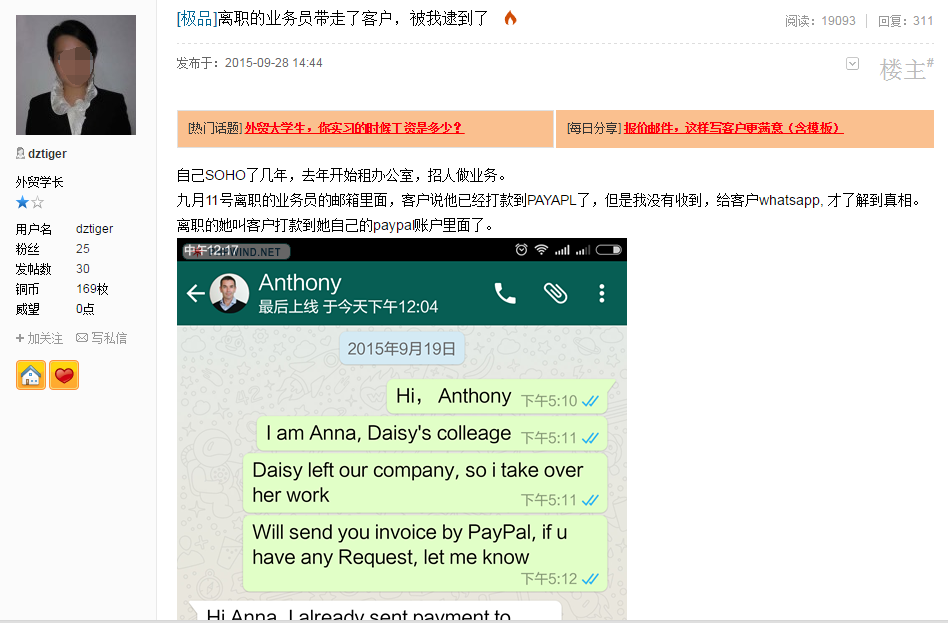 一個真實案例,發帖的Z女士是一家外貿公司的老板。