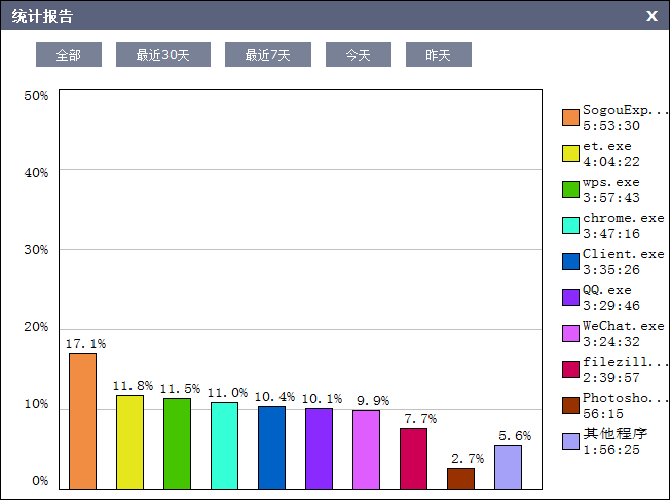 根據(jù)一些統(tǒng)計(jì)數(shù)據(jù)表明,職場(chǎng)上員工每天在私人活動(dòng)上花費(fèi)的時(shí)間為每天1.5到3個(gè)小時(shí)。法院在一份報(bào)告中指出,如果一家有500名員工的公司,每天僅使用半個(gè)小時(shí)從事私人活動(dòng),那么這個(gè)公司每年會(huì)損失大約1000萬(wàn)元。使用上網(wǎng)行為管理軟件,跟蹤員工使用電腦的上網(wǎng)行為以及電腦使用情況,優(yōu)化工作效率,從而幫公司節(jié)省大量資金。