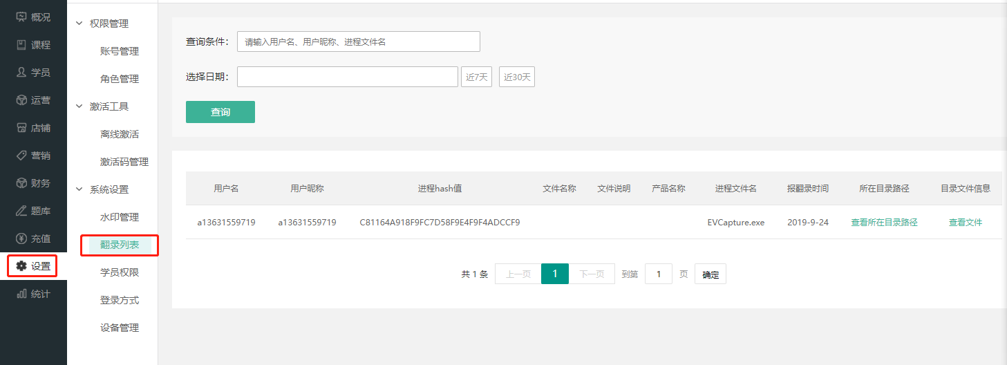 培訓(xùn)機(jī)構(gòu)辛苦做的教學(xué)視頻,一下子就被別人翻錄走了。有一些視頻加密系統(tǒng),既可以防止翻錄,也可以記錄某些學(xué)員賬號(hào)的翻錄記錄,然后針對(duì)翻錄的賬號(hào),進(jìn)行封禁處理。這樣是保護(hù)自己視頻版權(quán)權(quán)益的一種方法,那么,視頻加密系統(tǒng)如何查看視頻翻錄記錄?