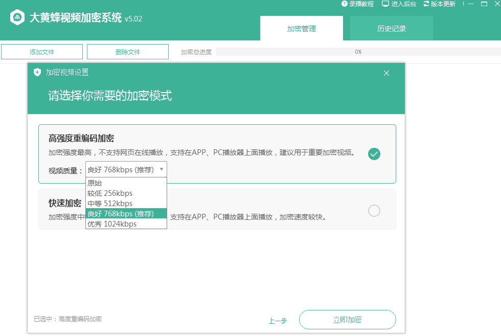 視頻加密系統哪一款更好呢?常見的視頻加密方法優缺點 因此,一個好的視頻加密系統,除了優秀的視頻加密本身,還需要非常好的防復制機制能力,否則盜版者可以使用屏幕錄制軟件進行錄制。大黃蜂視頻加密系統非常好,除了強大的視頻加密能力外,還具備防盜版能力。