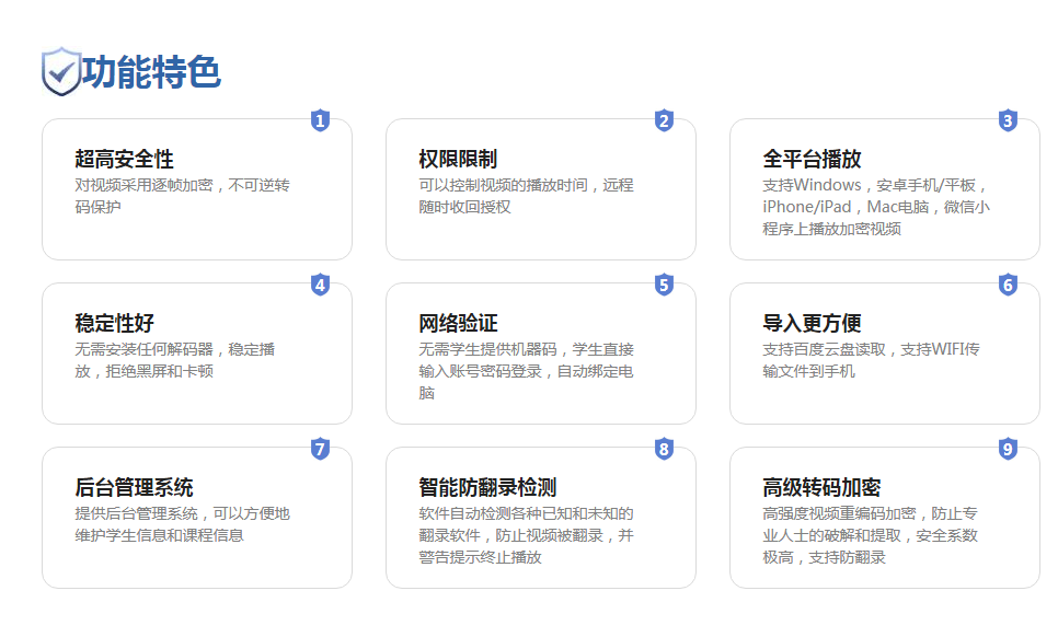 以上內(nèi)容就是對加密文件怎么打開,所做的解答和分析,使用專業(yè)軟件打開加密文件是更加穩(wěn)妥的,不僅節(jié)省精力,而且還不會破壞加密文件里面的信息和資料,最后給大家推薦一款比深造加密還好的視頻加密軟件,可嘗試使用大黃蜂視頻加密軟件,是一款專為視頻商家、教育機(jī)構(gòu)打造的商業(yè)視頻加密軟件。采用高強(qiáng)度256位AES加密變形算法,可以對mp4、avi、wmv、mpeg、flv、3gp、mov等多種常見視頻文件進(jìn)行逐幀加密,能夠杜絕加密的視頻被破解提取,有效保護(hù)您的視頻版權(quán)。好了,以上就是關(guān)于加密軟件的相關(guān)分享,希望能幫到大家。