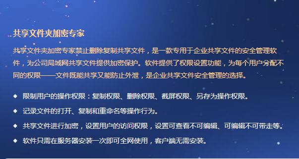 第三種,就是對需要分享到局域網(wǎng)的文件夾進行加密,這種就需要用到專門的加密軟件,如共享文件夾加密專家。這種加密軟件的功能是很強大,也很齊全的,可以滿足用戶的不同加密需求。