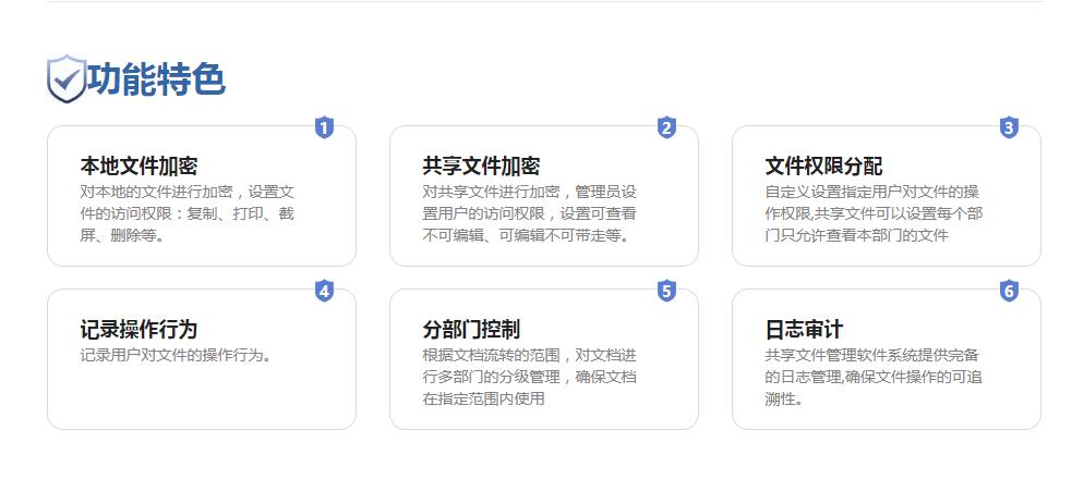 本地文件加密,對本地的文件進行加密,設置文件的訪問權限:復制、打印、截屏、刪除等。共享文件加密,對共享文件進行加密,管理員設置用戶的訪問權限,設置可查看不可編輯、可編輯不可帶走等。文件權限分配,自定義設置指定用戶對文件的操作權限,共享文件可以設置每個部門只允許查看本部門的文件,共享文件夾加密專家是一款非常好用的加密軟件。大家可以去嘗試使用看看。