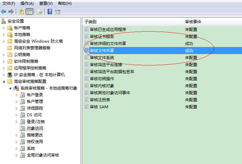 以管理員用戶打開控制面板--管理工具--本地安全策略,在左邊依次打開安全設置--本地策略--審核策略,在右側雙擊“審核訪問對象”,選中“成功”及“失敗”,按確定后重啟生效。