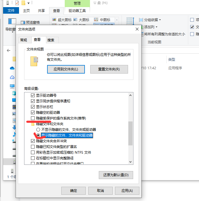 1、插入加密U盤,開啟顯示隱藏文件和隱藏的操作系統文件