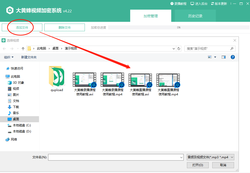下載大黃蜂視頻加密系統,加密時可選擇上傳云端或采用離線方式直接傳給學生。